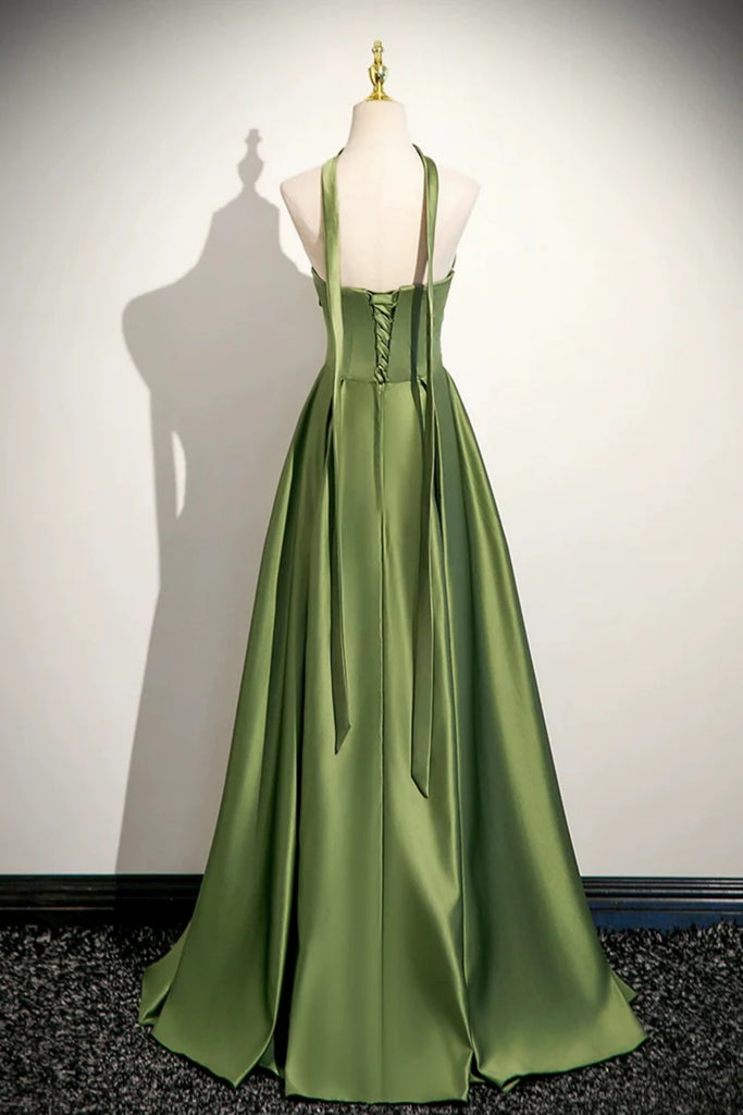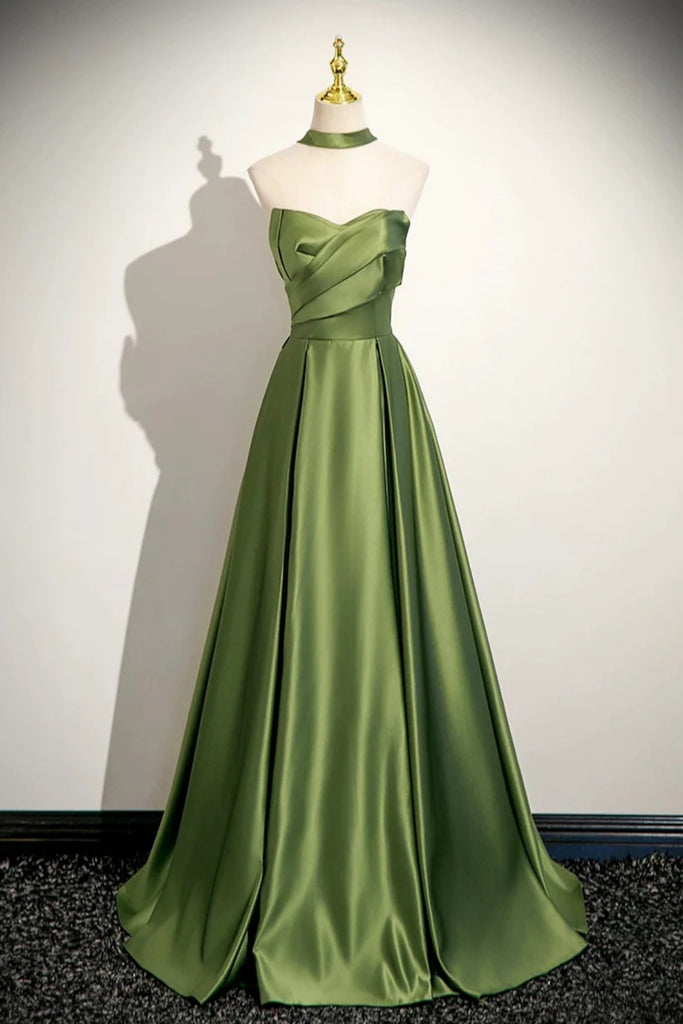 Green Satin A Line Strapless Long Prom Dresses, Green Formal Graduation Evening Dresses WT1681