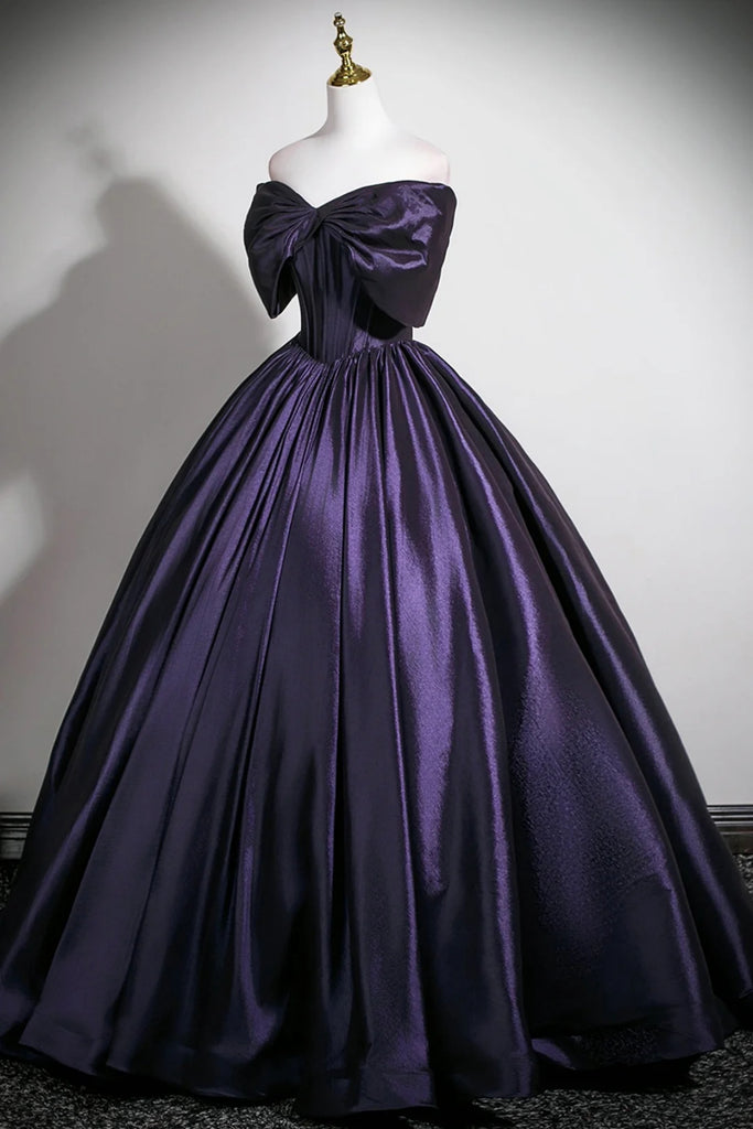 Purple Satin Off the Shoulder Long Prom Dresses, Off Shoulder Purple Formal Evening Dresses WT1682